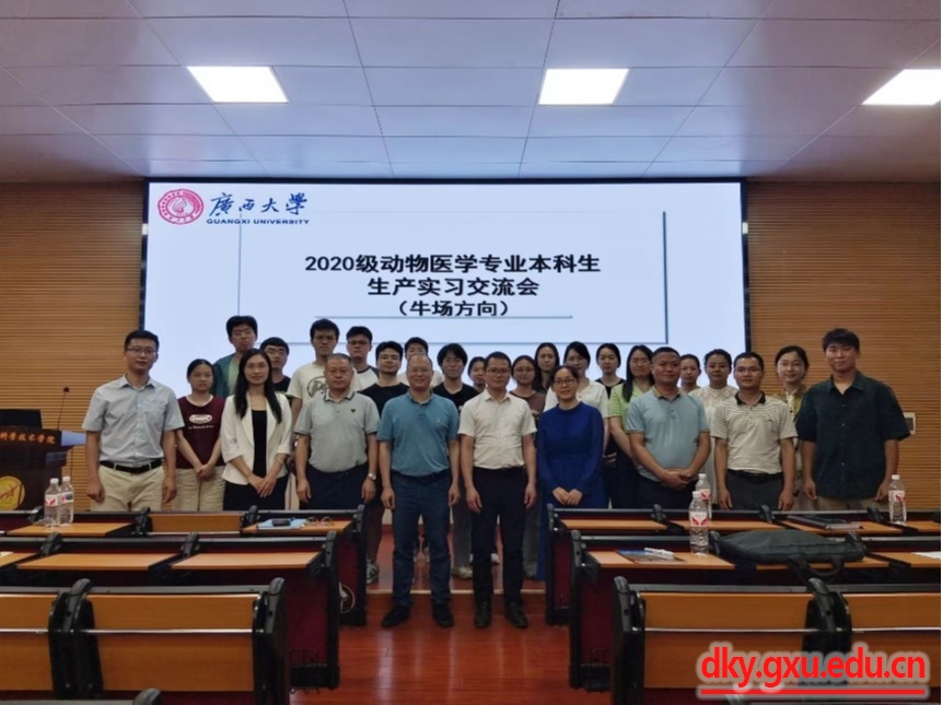 为更好地推进员工实习和就业工作,4月26日下午,太阳成集团tyc234cc在公司318会议室举办了2020级动物医学专业本科生生产实习交流会(牛场方向)。动物科学技术公司副经理韦祖樟教授、何家康教授,动医系主任陈樱教授,动科系主任李辉副教授,副主任黄洁萍副教授,实习指导教师师铭咸、牟静、雷磊和丁嘉烽等,皇氏畜牧公司总监张振东、人力资源经理蒋吉燕,皇氏赛尔公司副总经理熊锦萍、人力资源经理陈康露,皇氏人力资源经理宁丽萍,河池雪花牛公司董事长覃潘、副总经理李正毅,西江乳业金光公司副总经理韦英将,以及实习员工们等参加会议。会议由实习指导教师丁嘉烽主持。