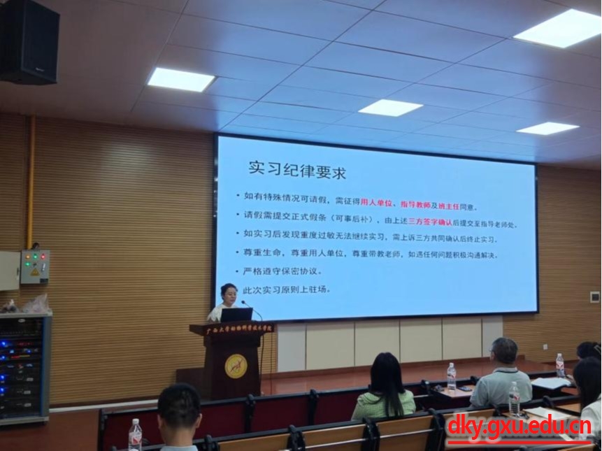 在会议中,皇氏畜牧公司蒋吉燕女士详细介绍了企业文化、休假管理、员工成长等方面内容;河池雪花牛公司覃潘先生介绍了企业发展概况、产业规模、发展计划等内容;皇氏赛尔公司陈康露女士对公司发展,奶水牛项目进展,员工福利等内容进行了汇报;西江金光公司韦英将先生主要汇报了公司基本情况。丁嘉烽老师简要总结了各企业的发展情况,再次欢迎各实习企业的到来。师铭咸老师对实习要求给予了细致讲解,使同学们充分了解本次生产实习的纪律要求、安全保障、成绩考核,以及特殊情况处理等。会议最后,同学们与指导老师和实习单位进行了热烈的讨论。最后由副经理韦祖樟教授作会议总结发言。