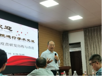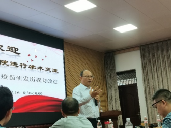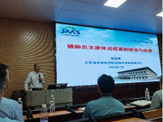 邵国青研究员首先介绍了猪肺炎支原体活疫苗的发展以及研究现状,经过何正礼、金洪效、邵国青等三代科研人员长达30年的实验室与临床试验,证明168株免疫原性好、安全稳定。随后,介绍本研究团队采用“无细胞培养-本种动物回归交替传代”致弱技术,攻克了强毒株致弱后仍保持免疫原性的难关。最终成功研发猪肺炎支原体活疫苗,显著优于国外灭活疫苗,整体技术居国际领先水平,疫苗转让给4家国内兽用生物制品企业,产品在全国应用已超过一亿头份,打破国外垄断,对生猪养殖过程中猪支原体肺炎的防控发挥了重要作用,为国家带来巨大的经济和社会效益。
