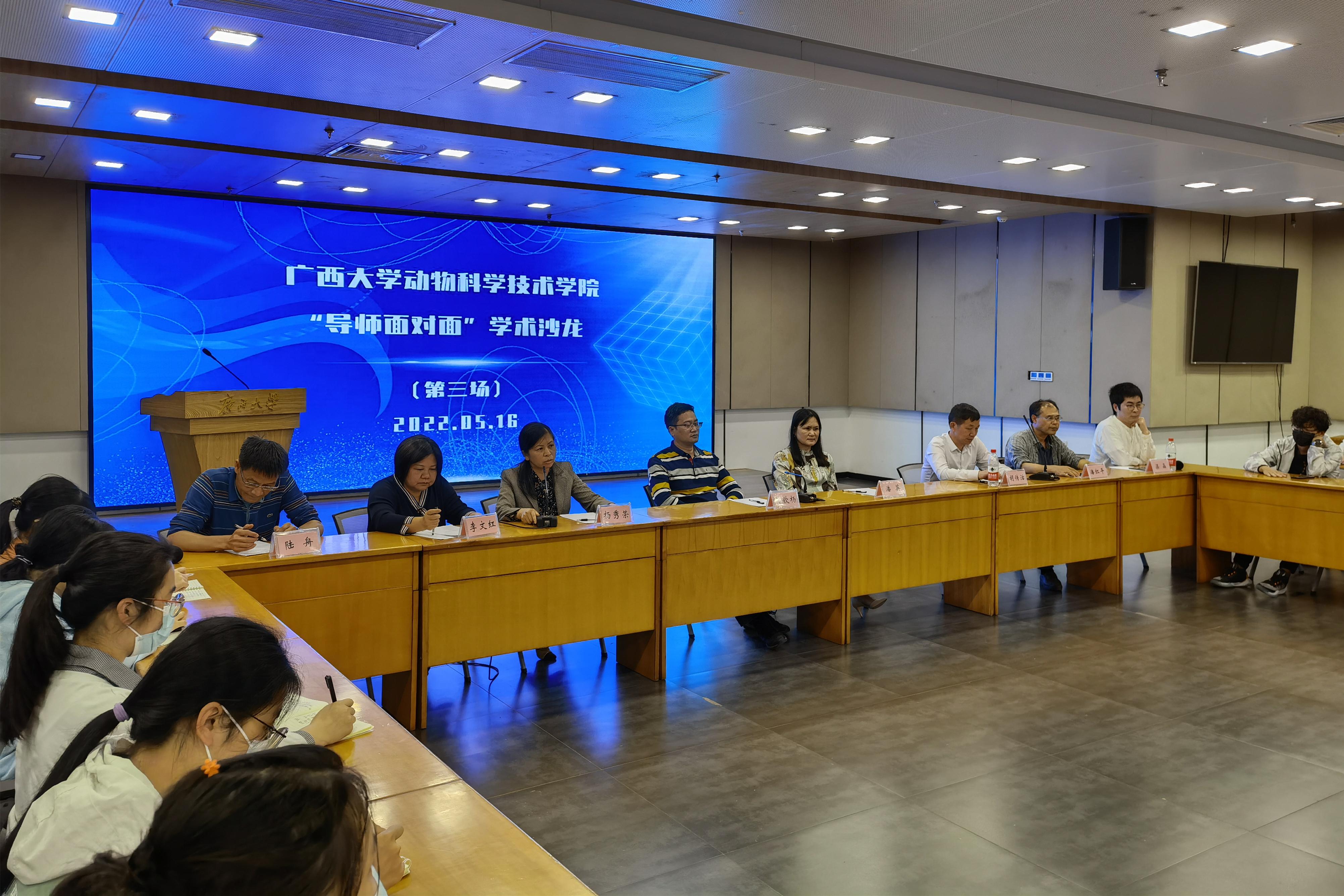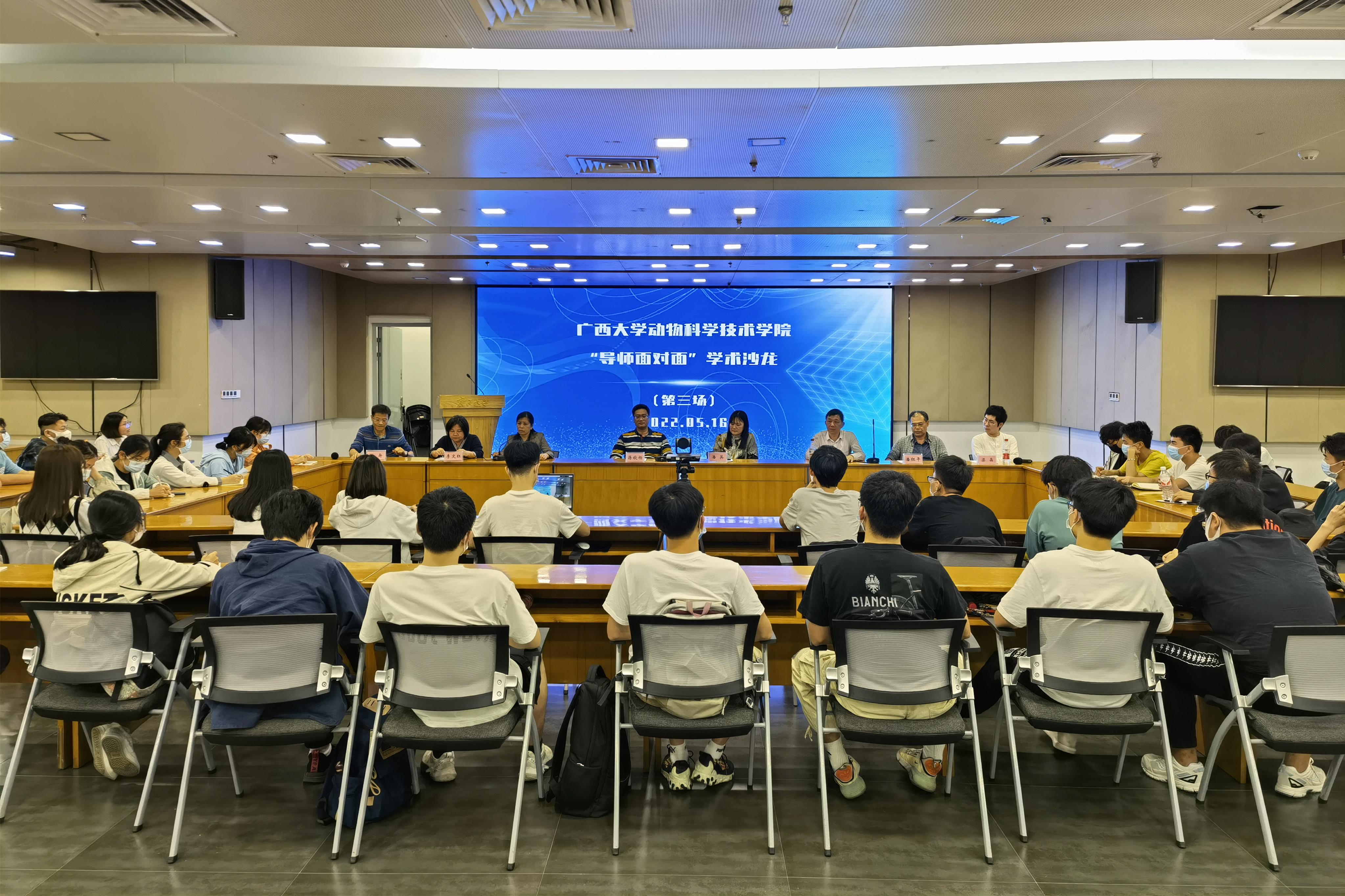 会上,蒋钦杨老师简要介绍了动物遗传育种学科的基本情况,并强调畜禽种业作为畜牧业发展的“芯片”,是我国现代畜牧业建设中的关键环节。潘英老师简要介绍了水产学科的基本情况,并指出水产业是农业中具有较强优势和发展潜力的产业,在广西国民经济发展中具有举足轻重的地位。杨秀荣老师罗列了广西优质鸡品种资源及其研究开发现状,并提出畜禽良种是畜牧业发展的基础和关键,我国需要大力开展种源“卡脖子”技术攻关,坚决打好种业翻身仗。胡传活老师分享了自身求学经历、科研成果和教学资源。潘红平老师通过图片展示了广西特色野生动物资源,并详细介绍其生活习性和生存现状,激发了同学们对于野生动物保护相关知识的学习兴趣。李文红老师结合自身经历鼓励同学们见贤思齐,多与良师益友交流,多向身边优秀的人学习。陆舟老师希望同学们注重培养科学探究精神,善于运用所学知识,对遇到的问题和现象进行深入思考。梁晶老师建议同学们努力学好专业知识,并在不断学习、实践中坚定专业思想。