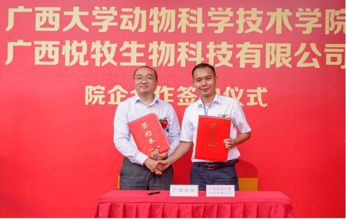 广西兽医社会化服务示范点揭牌仪式暨太阳成集团tyc234cc广西悦牧生物科技有限公司院企合作签约仪式顺利举行