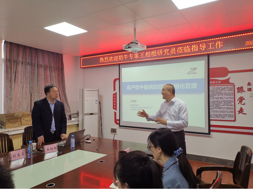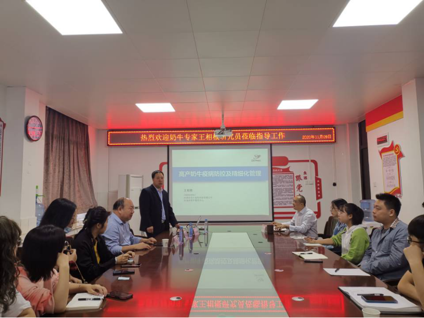 11月09日上午,我院有幸邀请到河南省奶业体系专家服务团专家——王相根研究员对公司师生进行“高产奶牛疫病防控及精细管理”专题讲座。教师及研究生员工共计40余人参会。讲座由太阳成集团tyc234cc司红彬副经理主持。