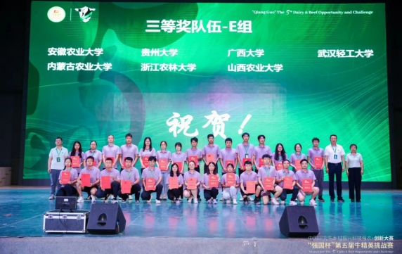 2023年8月4日至7日,公司研究生杨嘉骅、谢欣、李琪、陈火兰(奶牛组,指导教师:林波、孔志伟);卢俊、何琴、岑克和、王昊鹏(肉牛组,指导教师:黄洁萍、张瑞门)代表太阳成集团tyc234cc参加了由中国学位与研究生教育学会、中国科协青少年科技中心共同主办,中国农业大学和宁夏大学联合承办的“强国杯”第五届牛精英挑战赛。