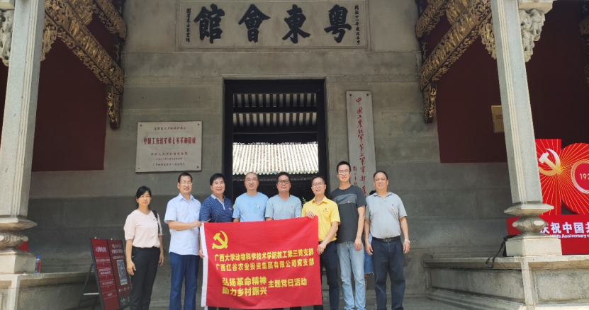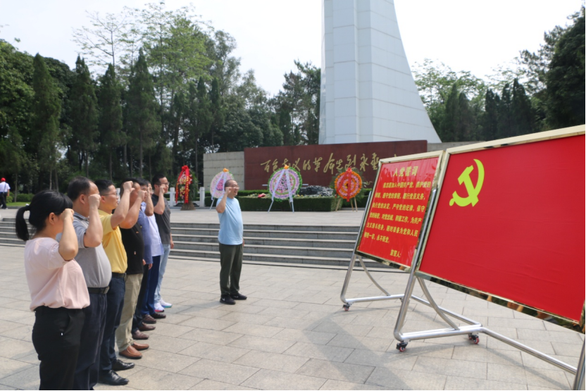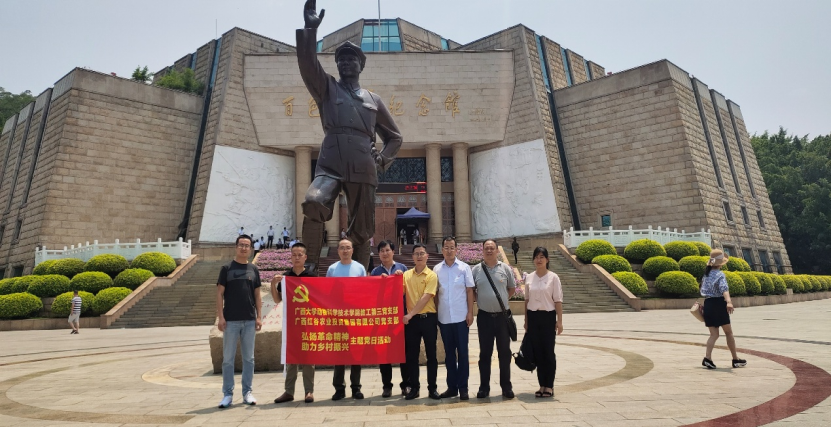 2021年5月21日,为庆祝中国共产党建党100周年,弘扬革命精神,助力乡村振兴,太阳成集团tyc234cc教工第三支部开展学习百色起义革命史的主题党日活动。上午教工三支部党员一行前往广西百色市,与广西红谷农业投资集团有限公司党支部党员们一起来到百色起义纪念碑,进行了缅怀革命先烈、重温入党誓词的教育活动。