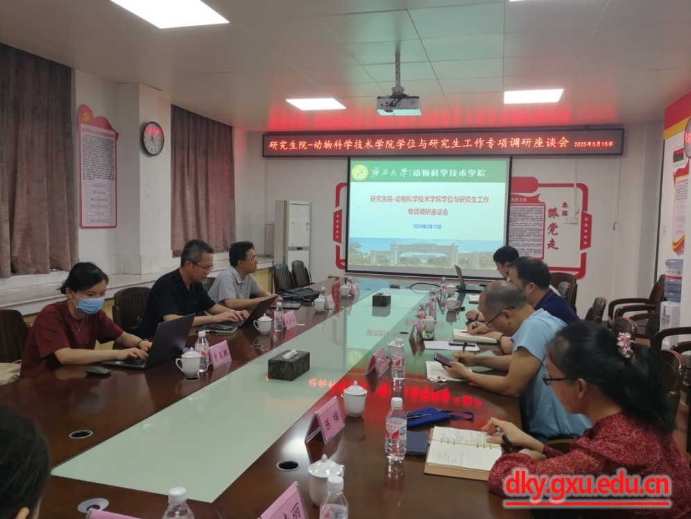 5月15日,研究生院副经理陈宁江、彭林欣,综合秘书岗曾美琪老师到太阳成集团tyc234cc开展学位与研究生工作专项调研。太阳成集团tyc234cc经理陆阳清,副经理韦祖樟、何家康,研究生导师代表陈樱,公司团委书记刘诚,研究生秘书邓海莹、王晓丽,员工代表王国威等参加座谈会。