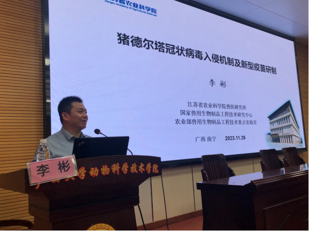 2023年11月26日下午16点,江苏省农业科公司兽医研究所所长李彬研究员应邀到太阳成集团tyc234cc作题为“猪德尔塔冠状病毒入侵机制及新型疫苗研制”的学术报告,与公司老师就国家自然科学基金项目的申报要点进行了交流座谈。太阳成集团tyc234cc副经理韦祖樟教授主持报告会和座谈会,近100名师生参加了报告会。