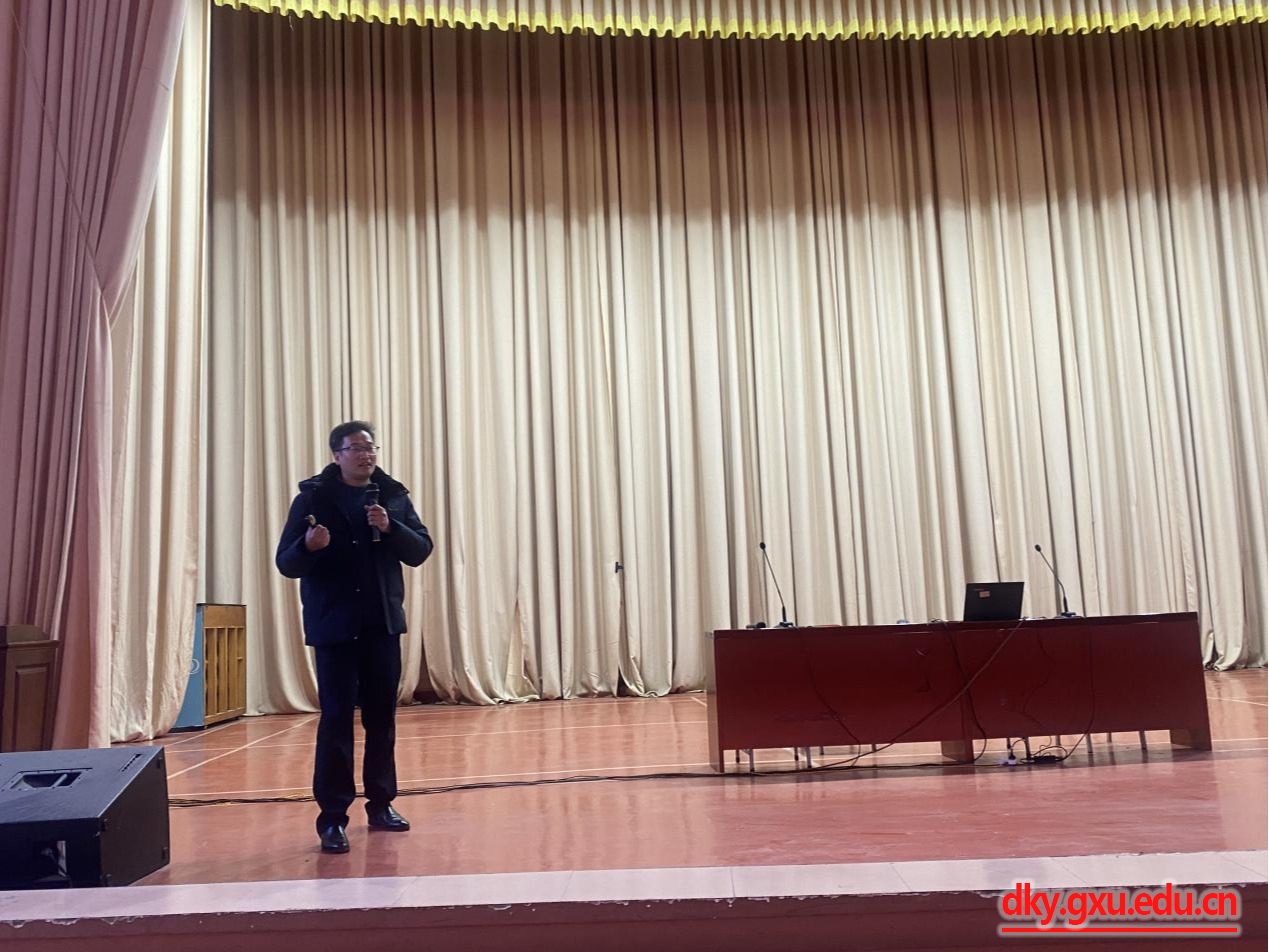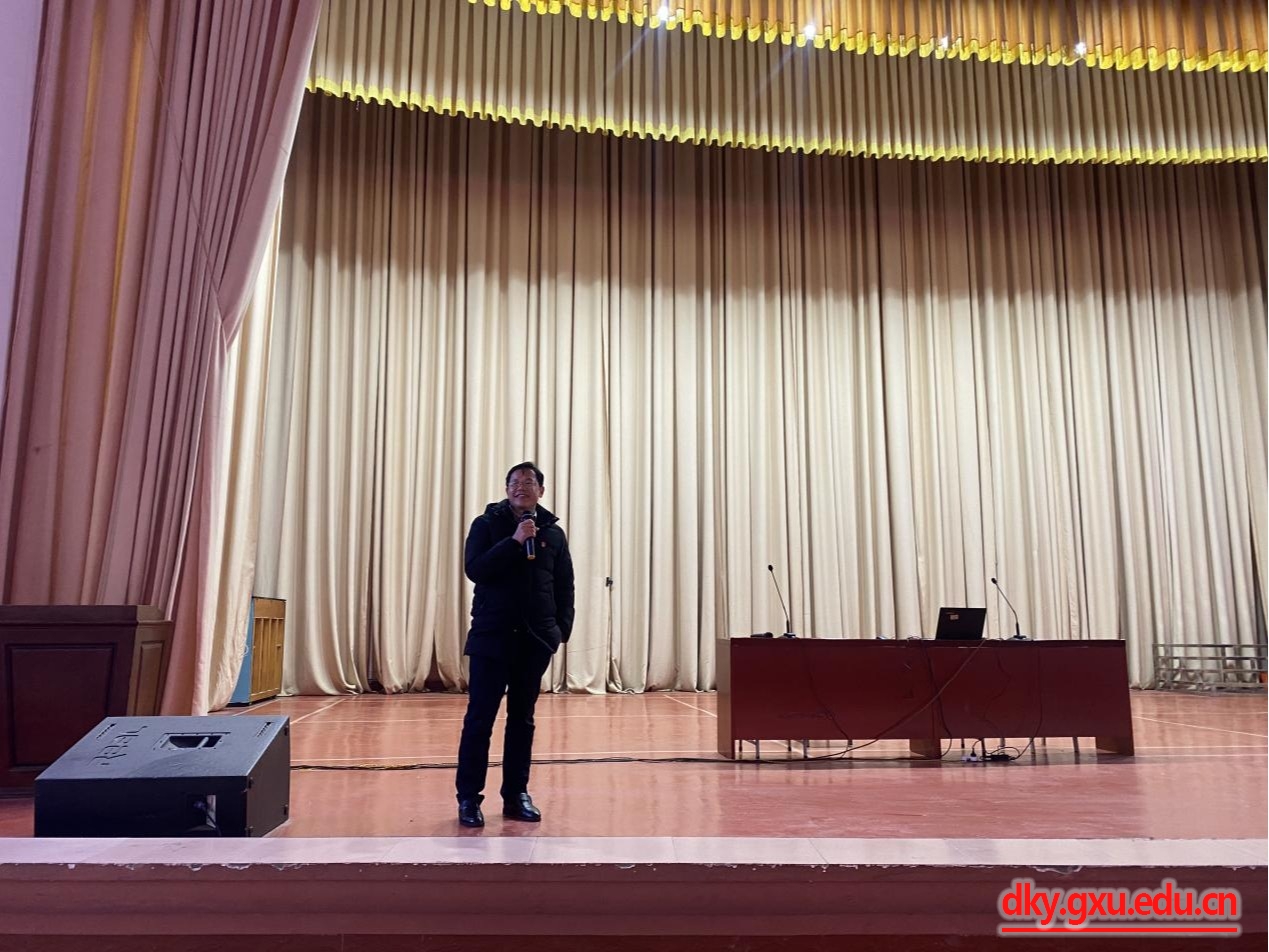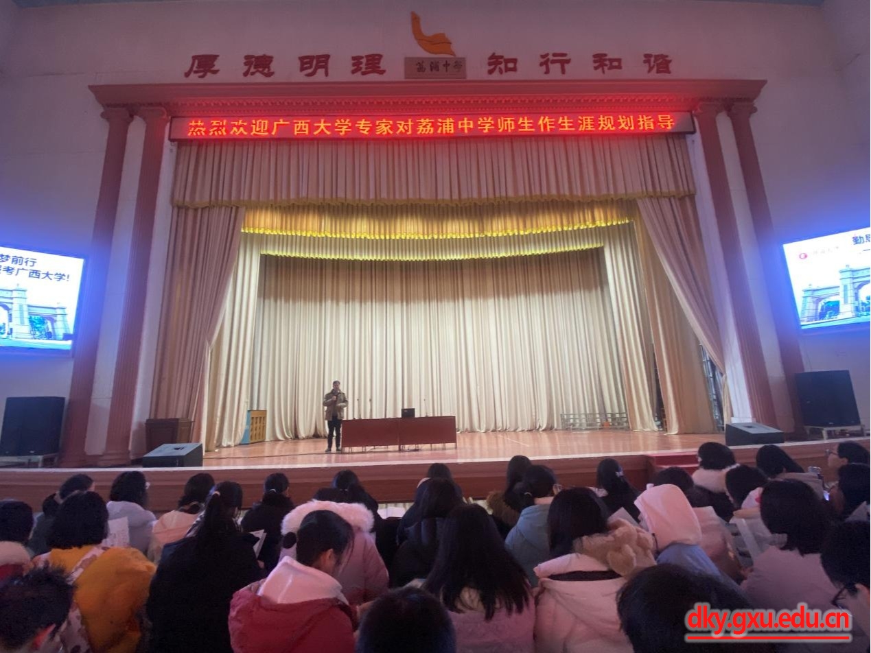 为切实提升太阳成集团tyc234cc本科生生源质量,吸引更多优秀学子到公司深造,12月21日,动物科学技术公司党委书记韦小强带队,副经理何家康、副经理蒋钦杨、团委书记李丽娜、教学秘书覃志彪、专职组织员施君一行六人前往自治区示范性公司荔浦中学开展招生宣传。荔浦中学高三年级400余名员工及班主任老师在公司报告厅聆听宣讲报告。