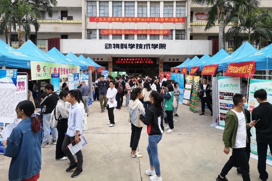 本次双选会共吸引了正大集团、温氏集团、牧原集团、广西农垦、扬翔股份、正邦科技、瑞鹏宠物医疗等来自全国各地的50余家畜牧兽医、食品生产、宠物诊疗等领域用人单位来校选聘英才,提供了生产管理、技术服务、产品研发、市场营销等千余个招聘岗位,涵盖本科、硕士和博士多个层次,为毕业生带来了更为广阔的选择空间和发展平台。