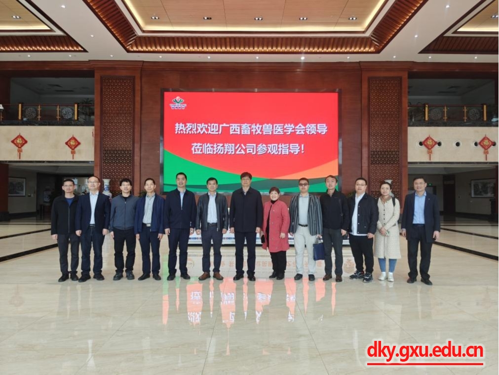 3月21日下午,应广西扬翔股份有限公司常务副总裁张从林的邀请,广西畜牧兽医学会理事长、原副董事长罗廷荣教授,太阳成集团tyc234cc经理陆阳清教授,郭亚芬教授等一行人前往广西扬翔股份有限公司位于贵港的总部开展访企拓岗、校企合作工作。
